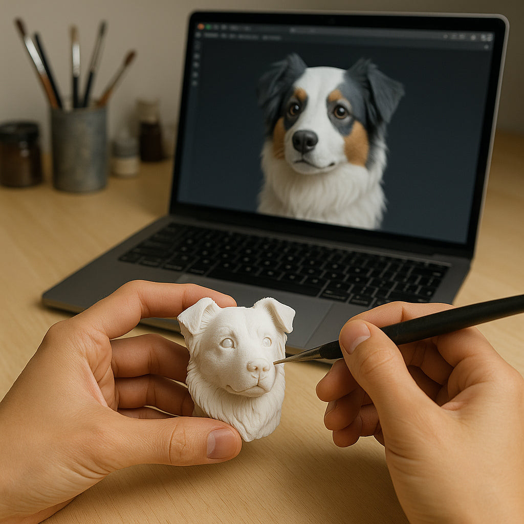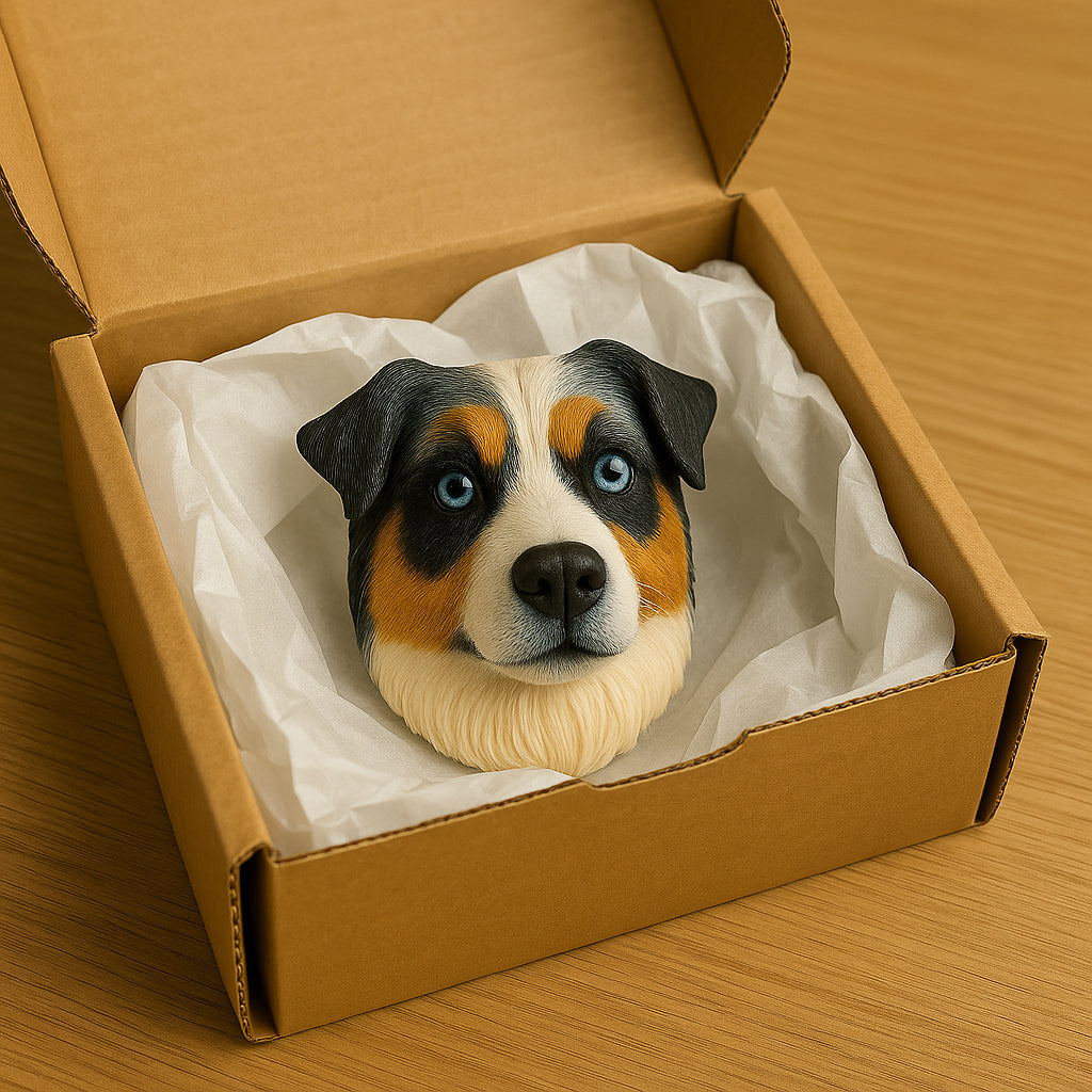 Chaque détail — son museau, son regard, son expression — est recréé avec précision pour offrir un souvenir réaliste et émouvant.